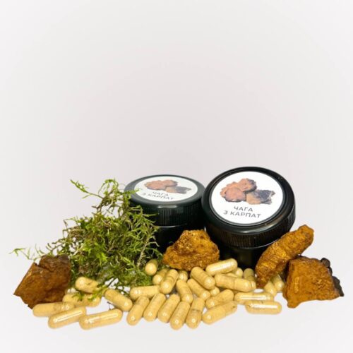 Чага в капсулах — 60 шт по 0.5 г Чага в капсулах — це зручний та ефективний спосіб використання цінних