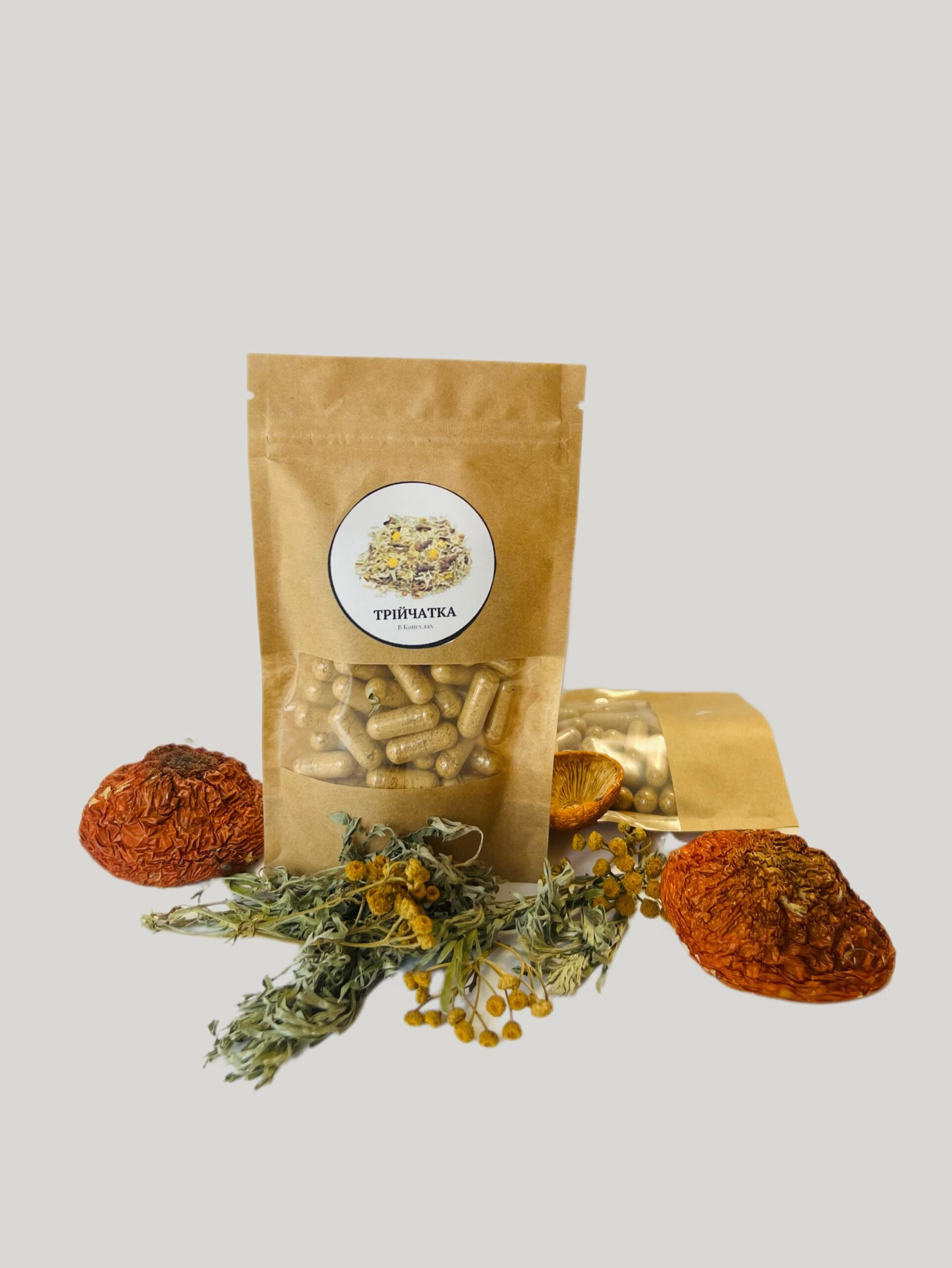 Мухомор + Трійчатка в капсулах 60шт по 0.5г Склад: мухомор, пижма, гвоздика, полинь